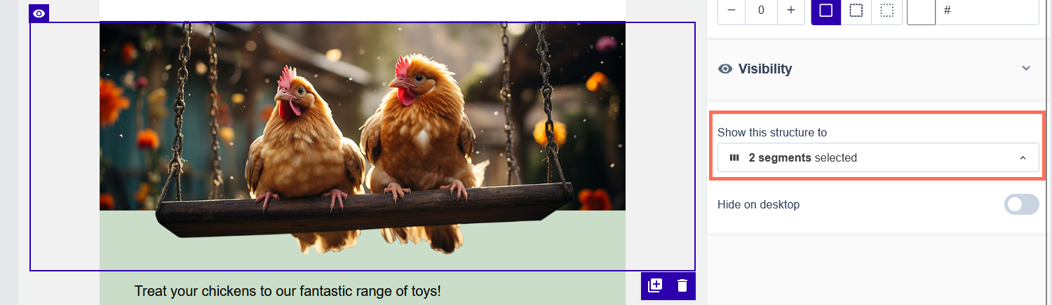 - Cliquez sur la structure pour laquelle vous souhaitez définir ou ajuster le contenu dynamique. Le panneau de paramètres de segment apparaîtra alors sur le côté droit.
