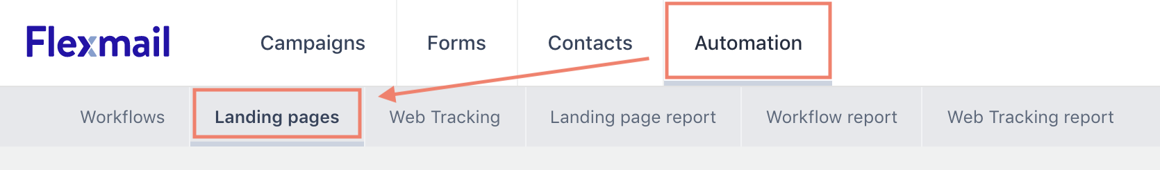 - Allez à la rubrique Landing pages dans la section Automation de votre compte Flexmail. Vous y trouverez toutes les pages de destination que vous avez déjà créées, classées par catégorie.